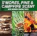 Three scents include pine, s'mores and campfire to add a pleasant smell