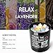 Non-toxic and Long-Lasting - Made of 100% natural soy wax with a cotton wick and natural essential oils, our candle burns longer 60 hours and cleaner than paraffin candles. The relax lavender scent is also relaxing and calming, making it perfect for a cozy night in.