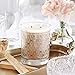HAND POURED LUXURY: The beautiful 22K gold printed clear glass jar is filled with 12 oz of scented soy wax with a double wick providing approximately 80 hours of burn time