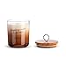 Candle arrives in a an elegant gift box and features white wax in a thick, clear glass vessel with a wooden lid
