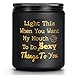 Funny Gifts for Lovers: With its quote “Light This When You Want My Mouth To Do Sexy Things To You”, this candle sets the perfect mood for a romantic evening with this ideal combination of message and scent. The fun text makes it a novelty and special present for man, woman, husbands, wives, girlfriends, boyfriends, valentine, fiance, bride, groom, gay or lesbian couple friends. Whether you’re in a new relationship or a long-term one, this sweet candle helps dial up the romance.
