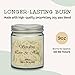 Extra Long Burn Time - Keep the candle burning for hours on end. These 10oz jar candles have a 50-hour burn time, making it a great companion for a bath or a tranquil night of reading in the living room.