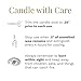 CANDLE WITH CARE – Always remember to burn within sight and keep away from children, pets, and things that can catch fire. Stop use when .5” of unmelted wax remains and extinguish every 4 hours for cooling. Trim the candle wick to .25” prior to each use
