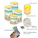Candles with Remote: this candles set come with a 18 key remote control, which easy to control the lights ON and OFF within 5M/16.4FT, has 12 kinds of light colors to choose, red, green, blue, yellow, purple, pink..., also has “multi color” to make the color keep changing.