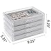 STACKABLE STORAGE: The stacking feature allows you to you create customized, vertical storage saving you space on dressing and makeup tables or bathroom vanity countertops; Perfect in bedroom cabinets, closets, drawers or on dresser tops; Lid fits over the top tray to keep jewelry protected and free from dust and dirt