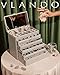 3,Large travel jewelry organizer box with PU leather make the jewelry sturdy and practical with high-end temperament