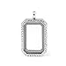 This is a rectangle shape locket pendant necklace made in alloy metal and rhinestones, silver color finish, lead and nickel free