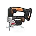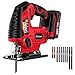 [Compact & Lightweight Design]: Compact jigsaw can cut straight lines or curves with different arcs, it weighs only 5lbs with a battery for less fatigue during operation, and the slim contoured D-grip top handle makes this cordless jigsaw more comfortable while working.