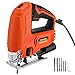 【7.2AMP Powerful Motor】850W Motor delivers maximized efficiency for cutting performance to a variety of materials. 6 variable speed up to 800-3000SPM make this jig saw has higher cutting performance and meets your different needs.