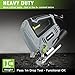 Versatility and Lasting Power - 3, 000 SPM power corded jigsaw for all kinds of wood cutting and shaping. Variable speed control to adjust cutting speed as blades and applications change, and a brake function for a precise finish