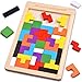 Reliable Quality : Come with a puzzle board with 11 pieces colorful russian blocks of different shape blocks. The overall size of the board puzzle measures 6.3 x 7.1 inches. Made of 100% natural wood with non-toxic water-based paints. All pieces have been sanded smooth.