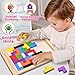 Ingenious and creative: Simple geometric patterns and rich colors, it's easy to use and can stimulate children's imagination. The wooden toys is easily the most utilized toy during free time. The brain teaser puzzle will be a perfect great game when you or your child need to calm down or relax.