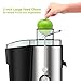 【Wide mouth juicer】The juicer with wide 3” feed chute, can holds a carrot or smaller apple at a time, easier to use, avoid the lengthy process of cutting fruits and vegetables. However, if you want to increase the juice yield, we recommend you to juice small pieces of vegetables and fruits.