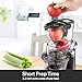 【Innovative Dual Feed Chutes】The slow juicer's unique 3” large dual-feed chute design achieves a more time-saving and convenient effect. Meet the style of putting in vegetables and fruits while using the pusher to juice. This design of the juice maker is a significant improvement for the 2nd generation slow juicer compared to the single feed chute slow juicers.