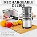 PORTABLE MIGHTY JUICER: This is the ultimate portable juicer that can be carried in your bag for a glass of freshness anywhere you go! This USB-C rechargeable citrus juicer is powerful enough to last multiple juicing sessions when fully charged. The one-size fits all design can get every last drop out of oranges, apples, pears, grapes, lemons, watermelons, and even pomegranates.