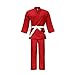 🔷【DURABILITY】: Strongly stitched at pressure points for durability. Sewn to provide extra space on shoulders for speedy unrestricted movements. Wider pants design allow ease during stretching, high kicks and lower stances.