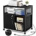 👍【Multifunctional】 This rolling printer stand featured with a lockable door, which allow convenient file access and add security that keep your business private. The two open shelves is great to storage and display for binders, folders, books, furnishing articles or decor. You can also adjust the shelves height as your different needs.