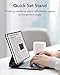 Quick-Set Magnetic Stand: ultra-strong magnets seamlessly combine case and tablet to let you easily open the floating cantilever stand to the perfect angle for typing or browsing