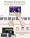 🎹【Teaching】The electronic piano keyboard support built-in wireless connection that allows you connect your devices like phone, PC or tablet with some Piano teaching applications such as Garage Band, Perfect Piano, Pop Piano or other online music lessons to makes you happy in piano learning and practice. You can follow the lighted keys to piay it.