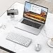 Ultra-thin and Portable Mini Keyboard - Ultra-thin, compact and cute, light weight Bluetooth keyboard, can easily put into laptop bag, backpack, travel bag, easy to carry. Wireless keyboard with scissor foot structure and 78 white rounded keycaps. The keyboard comes with hotkeys and media keys, including copy/paste, play/pause, down/up volume, lower/raise brightness, etc.