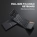 【Rechargeable & Portable】Bulit-in a 210 mAh battery, the travel folding keyboard has 5 months standby time in a single full charge. (Note: Type-C charging cable included). Folding Size 8.46"*4.68"*0.78", it will easily fit in your briefcase or laptop bag. Perfect for using on planes, at library, cafes, or anywhere you want
