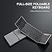 【Folding Full-size Wireless Keyboard】 ProtoArc XK01 portable bluetooth keyboard designed with 105-key layout with number keypad (Dimensions: 15.19 x 4.68 inch ). You can adapt to its layout and enter into working state anywhere. The non-slip pads at the bottom keeps the keyboard balanced and stable, it won't move when typing