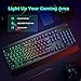 ✅RGB BACKLIT GAMING KEYBOARD:9 different cool RGB backlit modes( Aurora, Ripple, Music, Rainbow , Waves, Gradient, Windmill, Spectrum ETC), like a dream, add unlimited fun to the game.These modes will give you more enjoyable when you gaming or typing at night.light up the alloy to awaken your gaming passion.