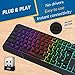 【RGB Keyboard + Drive Free Setting】This 60% keyboard has partitioned RGB modes with main keyboard RGB and around light RGB, showing different backlight effects and waves, double the playability. personality adjustment their favorite color.6 themed lighting effects, a total of 18 cool lighting effects you can customize the lighting effects as you want, much more than simple colors and breathing effects. Plug and play, drive free setting, FN adjustment light effect.
