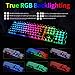 MECHANICAL GAMING KEYBOARD: This keyboard with blue switches has professional game mechanical shaft body with crisp click sound, delivering ultimate typing and gaming performance, more long-lasting and durable. Floating keys design, the keys of keyboard trigger sensitively.