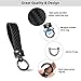 ❤【Premium Material】This keychain 4.72 inch length 0.6 inch width.Made with genuine leather and polished chrome plating zinc alloy for a comfortable, high-end feel.Metal part adopts high strength alloy, soft handle,durable,smooth,scratch-proof and rust-proof.