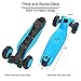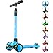 DURABLE AND WIDE DECK: The kids kick scooter features extra wide deck design, provides more comfortable and better stability, sturdy enough to hold up to 110lbs. The deck is low-to-the-ground, making it easy for little kids to hop on and off. Large enough to place Both Feet on the deck, kids can switch from pushing to enjoy the ride.