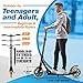 A Mix of Safety and Comfy Features: We keep everyone’s safety in mind, our scooter allows you to cruise with ease with its durable and sturdy deck supports riders up to 220 pounds. The rubber handles provide additional comfort and a steady hold. T-bar Lock offers steady and safe ride, you do not feel handlebar wobbly even on uneven sidewalks. Reliable brakes for stopping scooter quickly and easily.