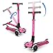 DURABLE AND WIDE DECK: The kids kick scooter features extra wide deck design, provides more comfortable and better stability, sturdy enough to hold up to 110lbs. The deck is low-to-the-ground, making it easy for little kids to hop on and off. Large enough to place Both Feet on the deck, kids can switch from pushing to enjoy the ride.