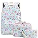 [Kids Backpack Capacity]Unicorn School backpack set including teens backpack,lunch box and pencil case,backpack contains 1 large main pocket with 1 zipper front pockets;2 mesh pocket for bottle;