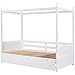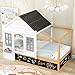 ♥ 【Adorable House Bed Design】 Our Twin size canopy platform bed Featuring roof and Window, this unique bed creates a fun and adorable space that not only serves as a comfortable sleeping area but also double as a space for your kids to play and have fun. Overall Product Dimension - 78''L x 42.2''W x 59.6''H. this twin bed fits standard twin size mattress (Mattress not included).