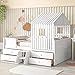 [Solid Wooden Kids Full Bed Frame] - This full house bed with storage drawers and roof features a sturdy high-quality solid wood construction for durability and strength, ensuring longevity. The headboard and footboard creates a charming curve that will add a lovely look to your child's bedroom.Weight Capability: Bed-250lb.