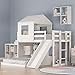 Crafted with a whimsical playhouse design, this bunk bed comes with slide and 3-step ladder.