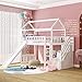 [House Bunk Beds with Slide] House-Shaped roof, ladders, slide can be put on both side, always be able to accommodate a variety of furniture arrangements in your child’s bedroom.
