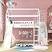 [Playhouse Design] - Crafted with a whimsical playhouse design,comes with slide and storage steps, this loft bed offers kids a comfortable and exhilarating experience during both sleep and playtime that will let their imaginations run wild. Perfect for hours of entertainment and relaxation, the playhouse design makes this loft bed the perfect centerpiece for any child’s bedroom.