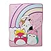 SQUISHMALLOWS DESIGN: Cam the cat, Fifi the fox and Winston the owl bring their sweet Squishmallows energy to this cute and colorful "On Cloud Nine" patterned plush throw.