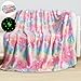 【Glow In The Dark】Our unicorn blanket can shine in the dark, mysterious and interesting. Only need expose the blanket to a bright light or daylight for a while, turn out the lights and watch the magic happen.