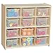 (12) translucent cubby trays provide storage organization for small toys, knick-knacks, or supplies that may otherwise be misplaced