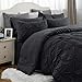 PRODUCT FEATURES- This black and gray comforter is made from pieced microsuede for a soft feel while the piecing add texture and color with their gray and black colorways. The decorative pillows add a mix of nature-inspired leaf print