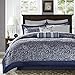 The paisley jacquard weave is woven into a beautiful combination of navy, dusty medium blue, and a hint of silver for a touch of sheen to your bedding