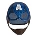 Attached belt features plastic buckle and six self-stick fabric fastener pockets with metallic ribbon detailing; Mask features Captain America insignia, plus eye holes and self-stick fabric closure to ensure a secure fit