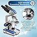 DIMMABLE LED ILLUMINATION - This compound binocular microscope features built-in dimmable energy efficient LED and an Abbe condenser with an iris diaphragm which helps improve contrast and depth, great for viewing tiny details of specimen slides.