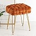 [HIGH QUALITY MATERIALS]--High advanced velvet fabric, soft and cozy. 2 layers hand-made woven technique creates this ottoman stool a feel of charm and avant-garde fashion feel. 4 sturdy gold legs makes it easy to use several years, durable and steady