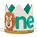 🦁A LITTLE LION'S DAY - The Safari Themed Birthday Crown is the perfect accessory for birthday celebrations, memorable photo shoots and everyday looks, the letter "O" on the birthday crown is replaced by a lion's head, and the "NE" is a dark green color combination that makes Your kids take center stage with this birthday party, impressing their guests.