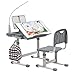 [Desk & Chair Height Adjustable] As kids are growing, desk height could be adjusted from 21.26 to 30 inches and chair from 11.81 to 18.11 inches. The desktop is also adjustable, just twist the knobs on both sides of the table, then adjust the tilts angle from 0-40°.