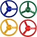 Package includes: you will get 4 packs steering wheel playset, there are 4 different colors, including green, blue, yellow and red, 1 pack for each color, this package also come with 4 sets mounting accessories, which are 4 packs cover caps, 4 pieces screws and 4 pieces washers. The quantity is sufficient and the equipment is complete enough to meet the needs of children's outdoor games